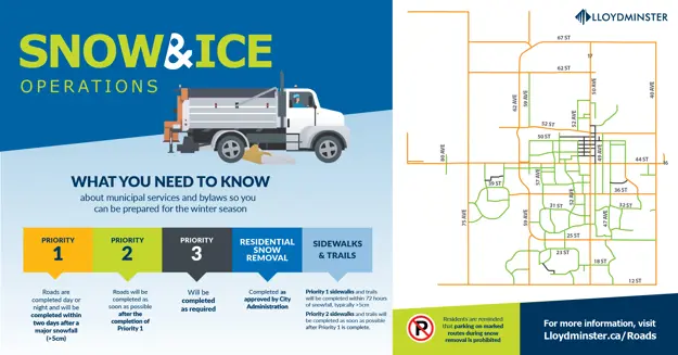 Lloydminster, AB/SK – Winter has returned to Lloydminster! Snow is expected to continue over the next 24 hours, and with continued snowfall, crews are expected to remain on Priority 1 routes today, overnight, and into tomorrow, Wednesday, February 18.
