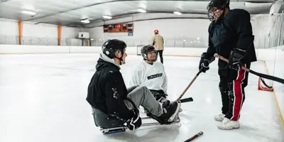 - Bring a hockey helmet, gloves and warm footwear. Sleds and equipment are provided.