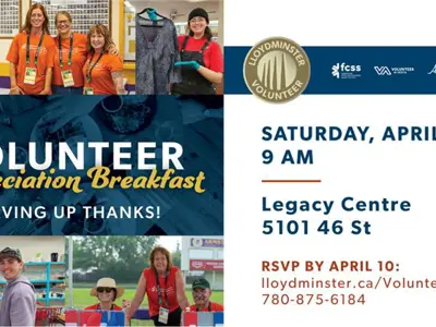 Lloydminster, AB/SK – The City of Lloydminster is hosting its annual Volunteer Appreciation Breakfast on Saturday, April 18, at 9 a.m. at the Legacy Centre (5101 46 Street) to recognize the contributions of local volunteers.