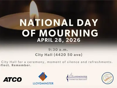 Lloydminster, AB/SK – The City of Lloydminster, in partnership with ATCO, the Lloydminster Construction Association (LCA), and the Lakeland Regional Safety Committee (LRSC), will hold a ceremony on Tuesday, April 28, 2026 to observe National Day of Mourning. The event will take place at the City Hall parking lot, beginning at 9:30 a.m., to honour those who have lost their lives or have been injured in the workplace.