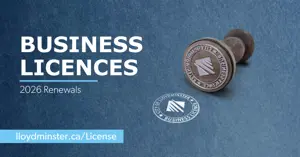 Lloydminster, AB/SK – Annual Lloydminster business licences are due for renewal, with payment required by January 1, 2026. Current licences expire on December 31, 2025, unless otherwise stated on the certificate, and will automatically renew once payment is received.