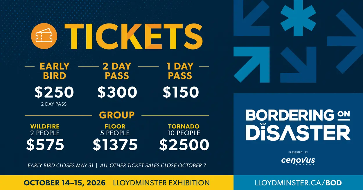 Lloydminster, AB/SK – Tickets for the 2026 Bordering on Disaster Conference presented by Cenovus Energy are now available. Early-bird pricing will be offered until May 31, 2026.